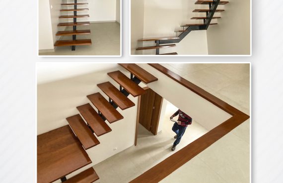 Escada estruturada em ferro e forrada em madeira
