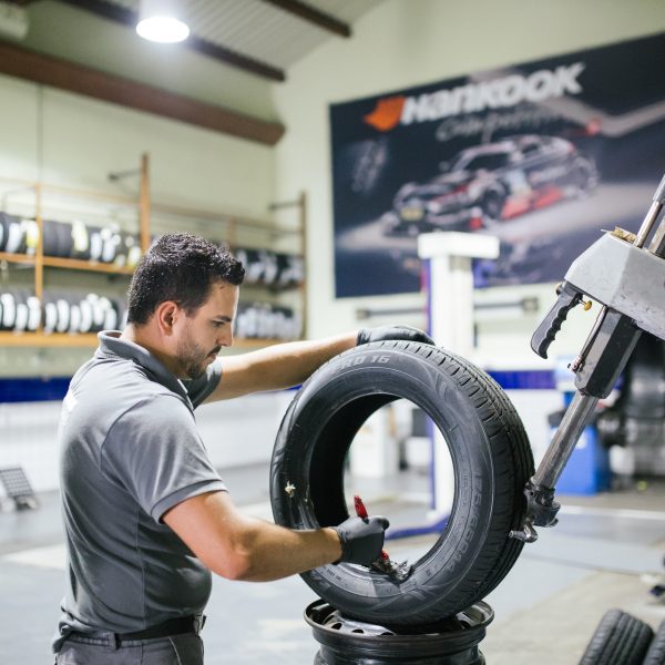 Montagem de válvulas nos pneus